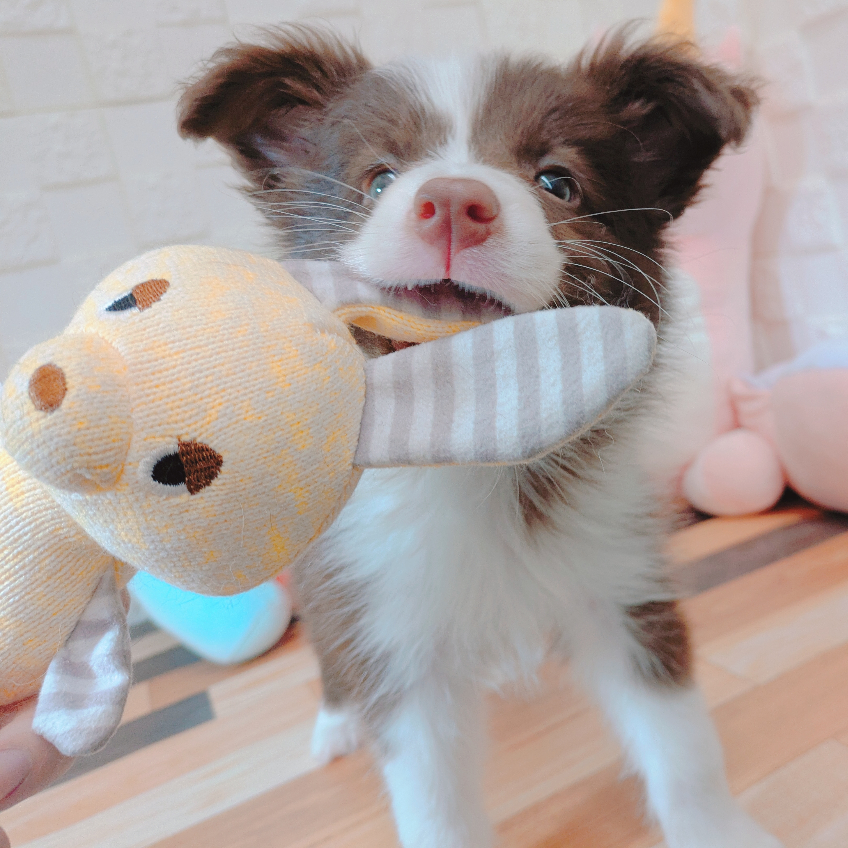おもちゃで遊ぶのも大好きでぬいぐるみがお気に入りみたいです😊