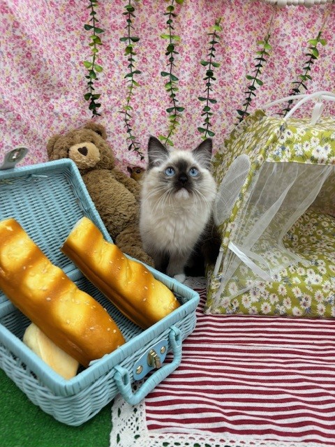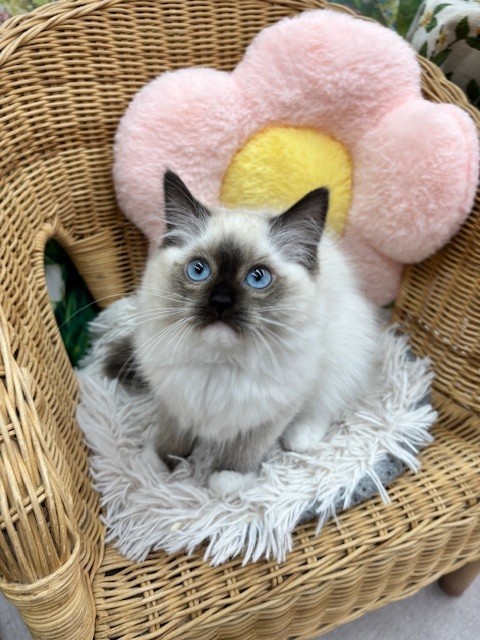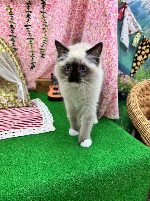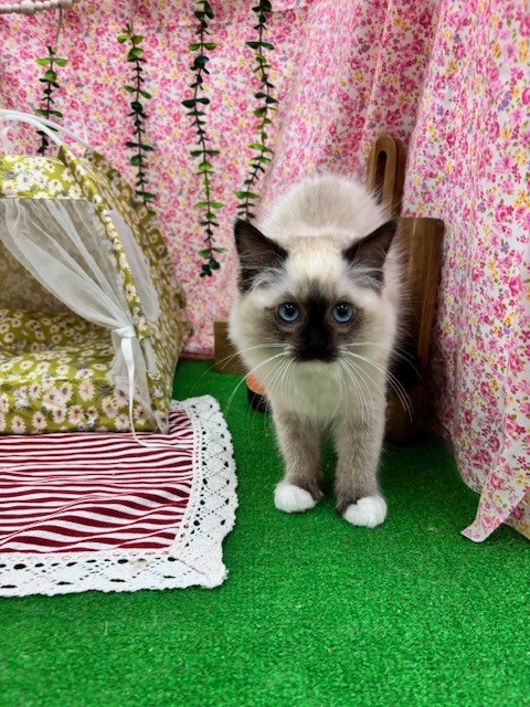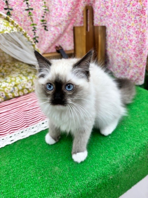 ブルーの瞳が特徴の、ラグドールちゃんです(⋈◍>◡<◍)。✧♡