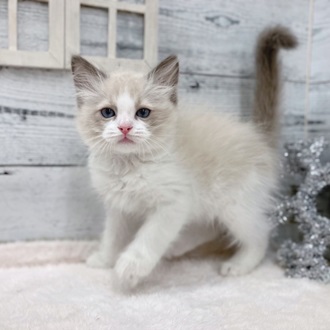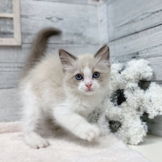 白い毛並みに青色のおめめがとってもキュートなラグドールくんがやってきました!
