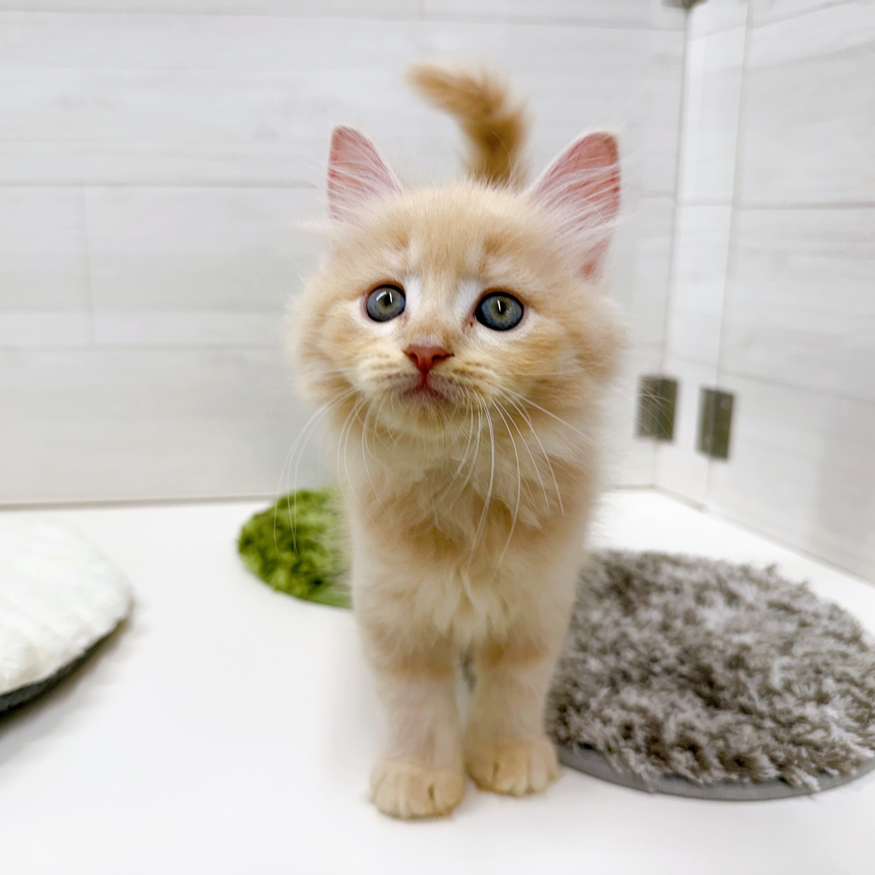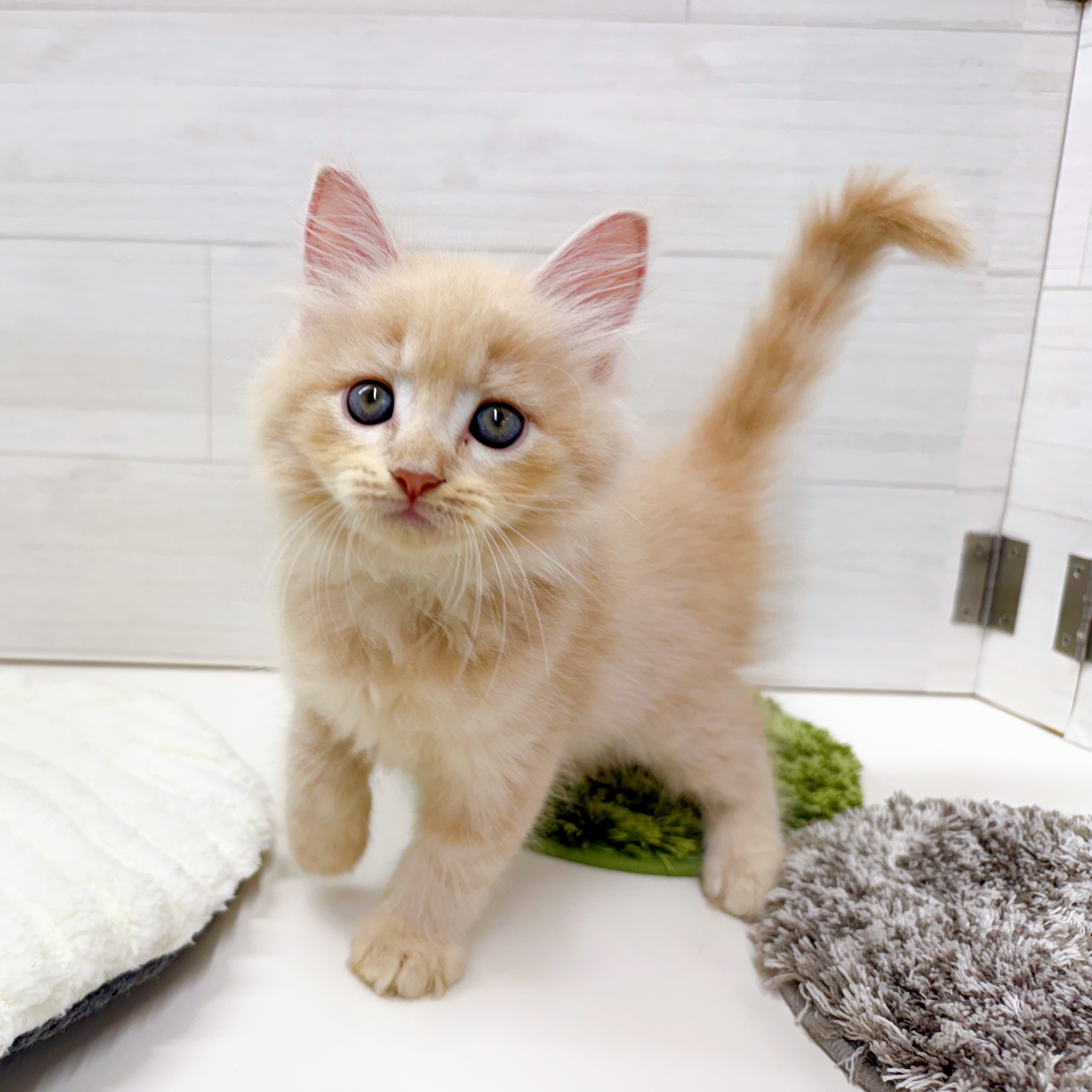 人が大好きなので、抱っこしてから置くと寂しくって鳴いちゃうこともあります。