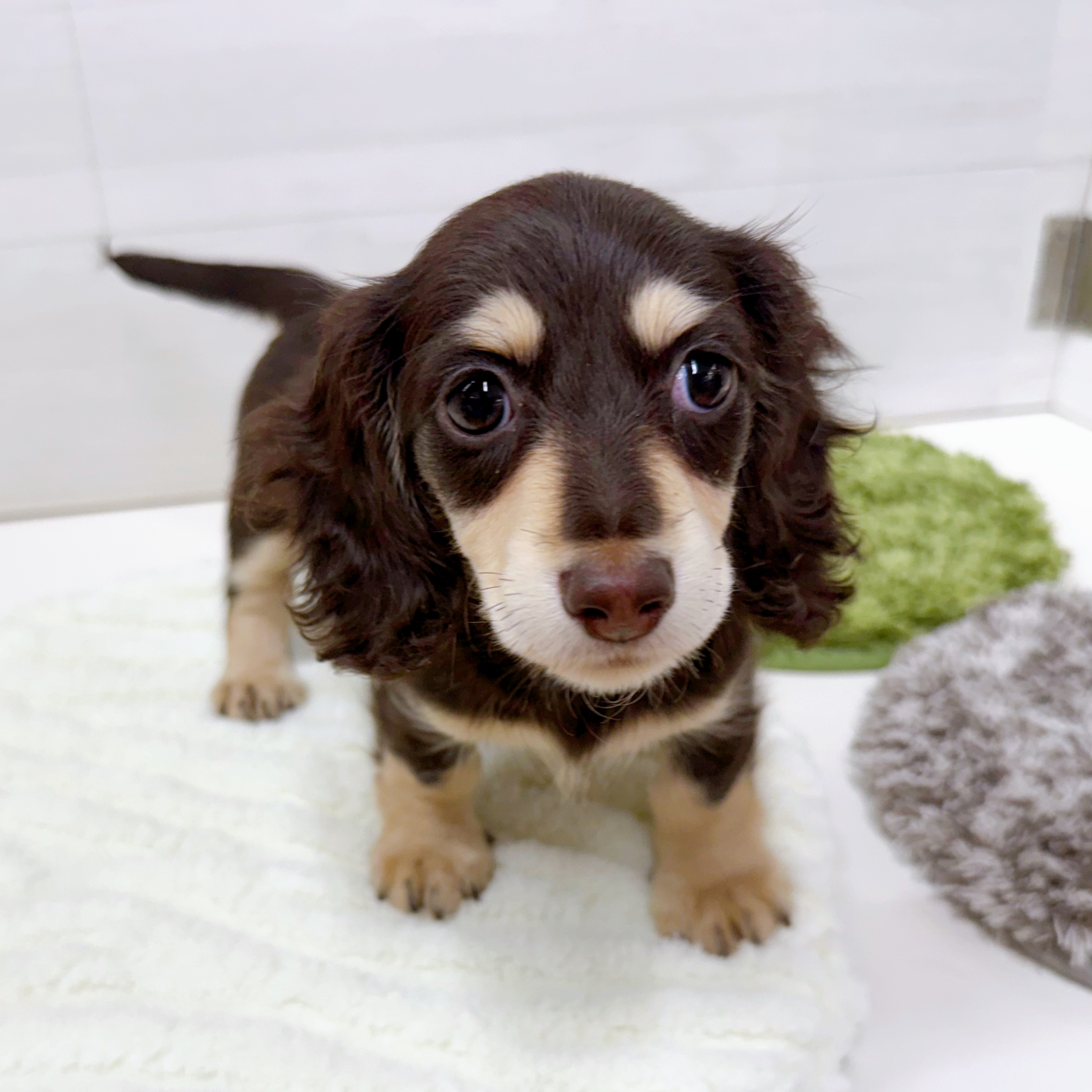 毛色がチョコレート色なんですが、その中でも見たことないくらい色が濃い子になります。