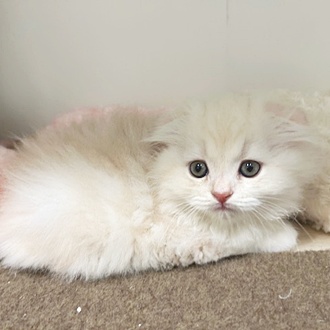 綺麗な毛色がクリーム色でホワイトが混ざっていて可愛い色合いです お顔もお目めがまん丸でお口がムニュっとしていて可愛い系男の子です(*^-^*)💗