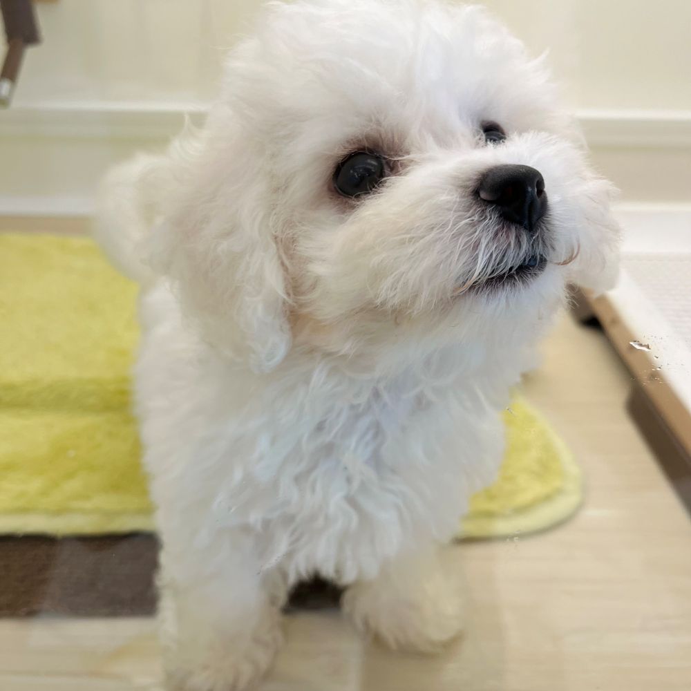 くりくりな瞳と短い足、むちっとした体がかわいいビションの男の子です🚙
