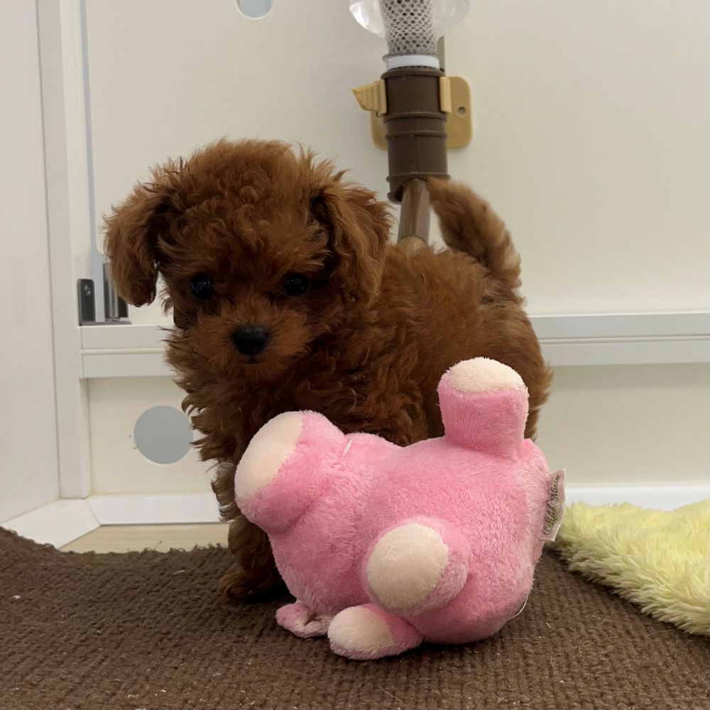 ちびっこですがとても元気いっぱいなやんちゃ娘ちゃんのトイプーちゃん、本日はおもちゃを手に入れてごきげんです🐖