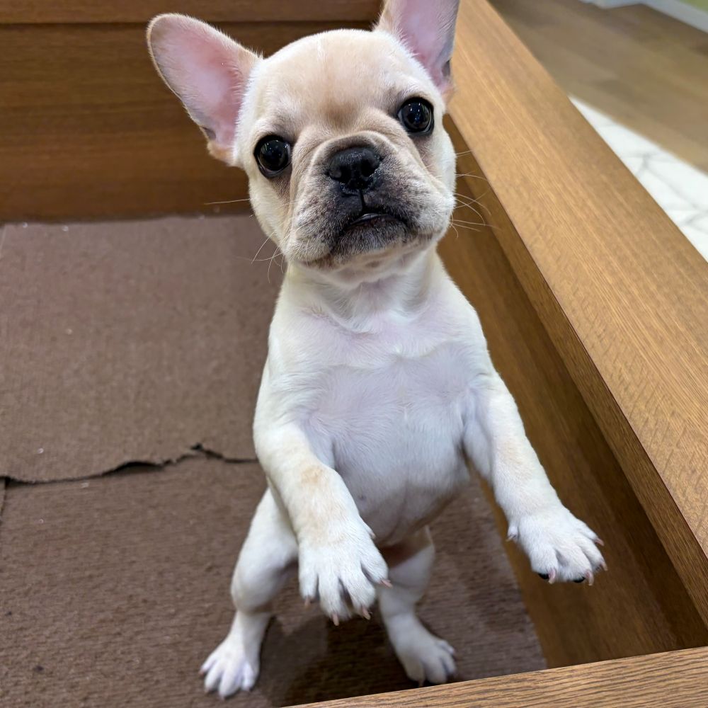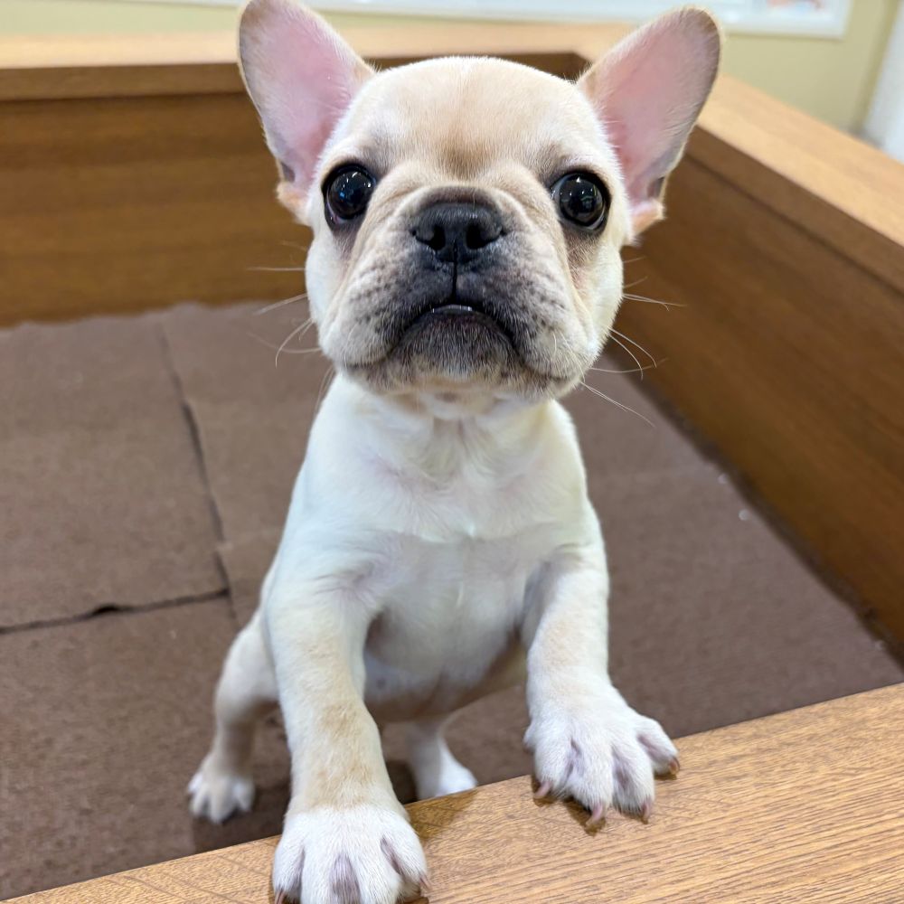 とても甘えん坊で遊ぶの大好きな癒し系のフレブル君、いつも人を見つけると元気にアピールをしてくれます!
