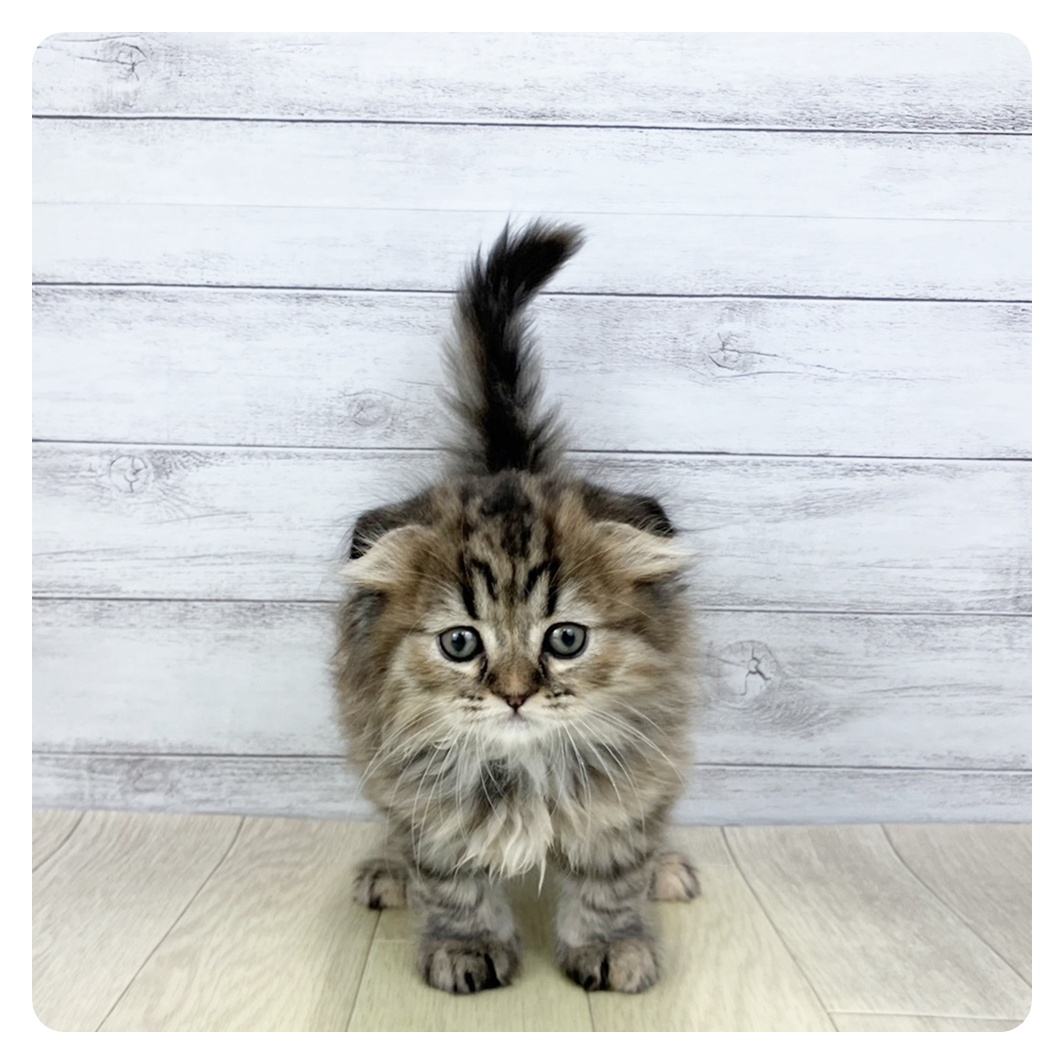 - 短い四肢でバランスをとるためにしっぽを立てるところもたまらなくキュート。性格は明るく活発、元気いっぱいのネコです。