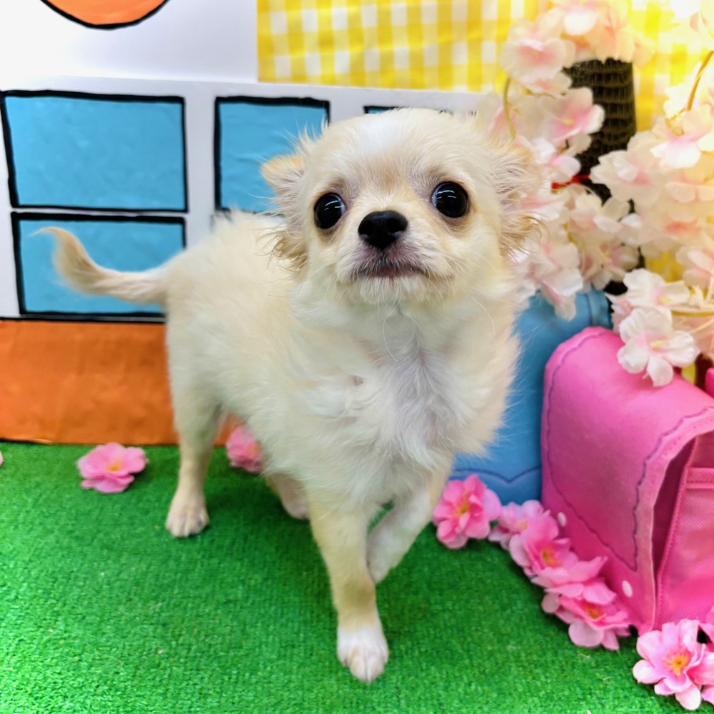 以前からワンチャンをお迎えしたいという想いがありました。ネットでショップのワンちゃんを拝見させていただき、モモに一目惚れしすぐに問い合わせさせていただきました。数日後ショップへ行き、モモに逢えた瞬間「やっぱりこの仔しかいない」と直感で感じ、お迎えすることを決めました。担当してくださったスタッフさんも素敵な方で、