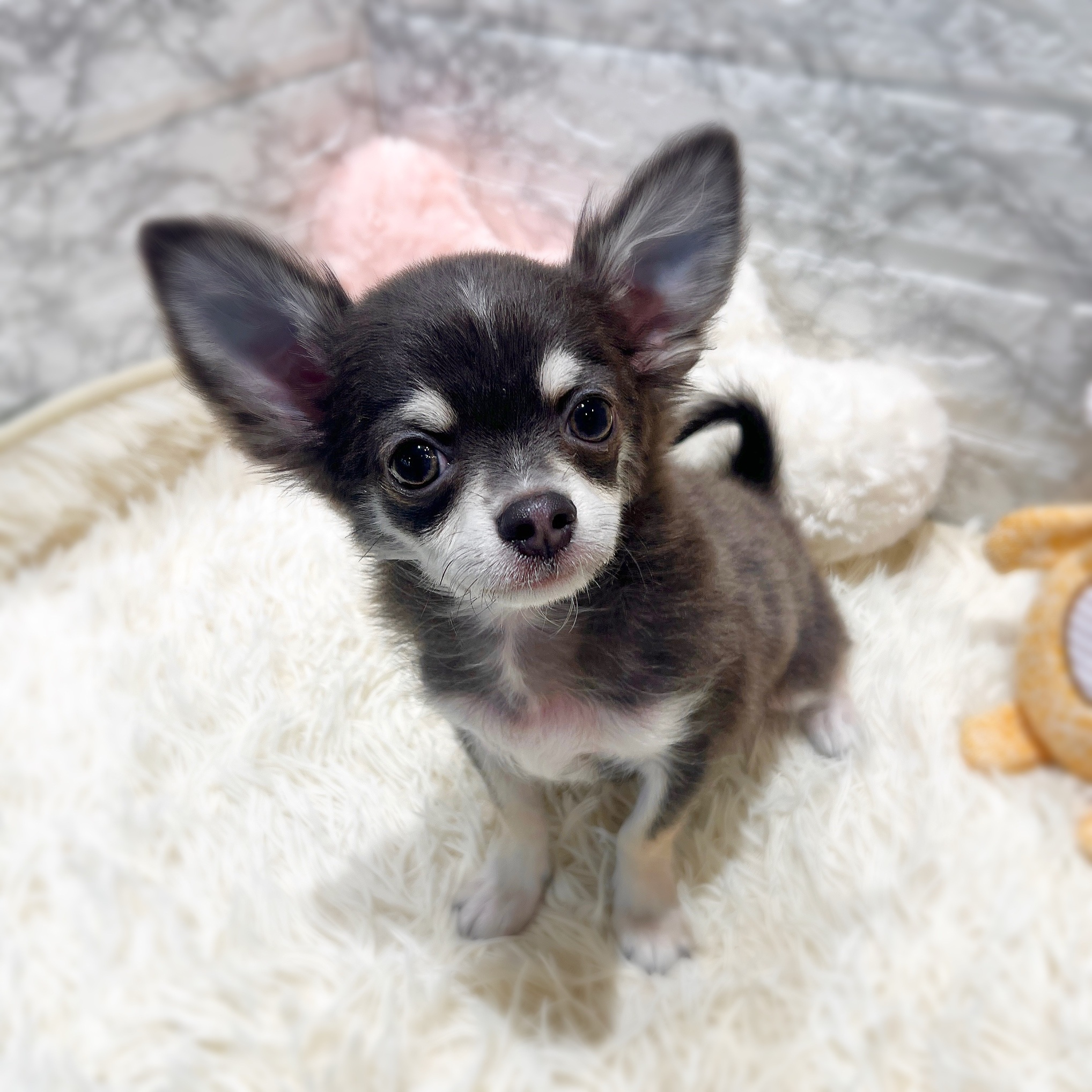3才の先住犬(♀)がいます。その子のトリミング時にれおと会いました。丁度その頃、2匹目は保護犬を迎えようと探してもいました。しかしお店の方のアドバイスを聴いていて『先住犬の性格からすると、保護犬よりもパピーちゃんの方が合っているよ』と助言していただけました。お店の方々の豊富な知識と先住犬の性格を把握してくださっているトリマーさんからの助言に不安もなくなりました。