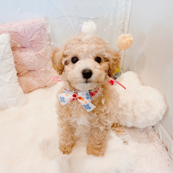 ブリーダーさんの所で見つけた子が、偶然に貴社のホームページに載っていて、会いたくてショップに行きました。写真も可愛かったのですが、実際はもっと可愛くお迎えを決めました。